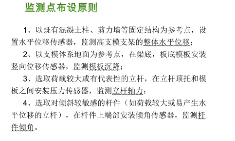 高支模監(jiān)測是采用高新技術(shù)手段從監(jiān)控層面進行的安全控制和事故防范,對高大支模體系進行監(jiān)測,為動態(tài)設(shè)計、信息化施工提供依據(jù),從而降低施工安全風(fēng)險。