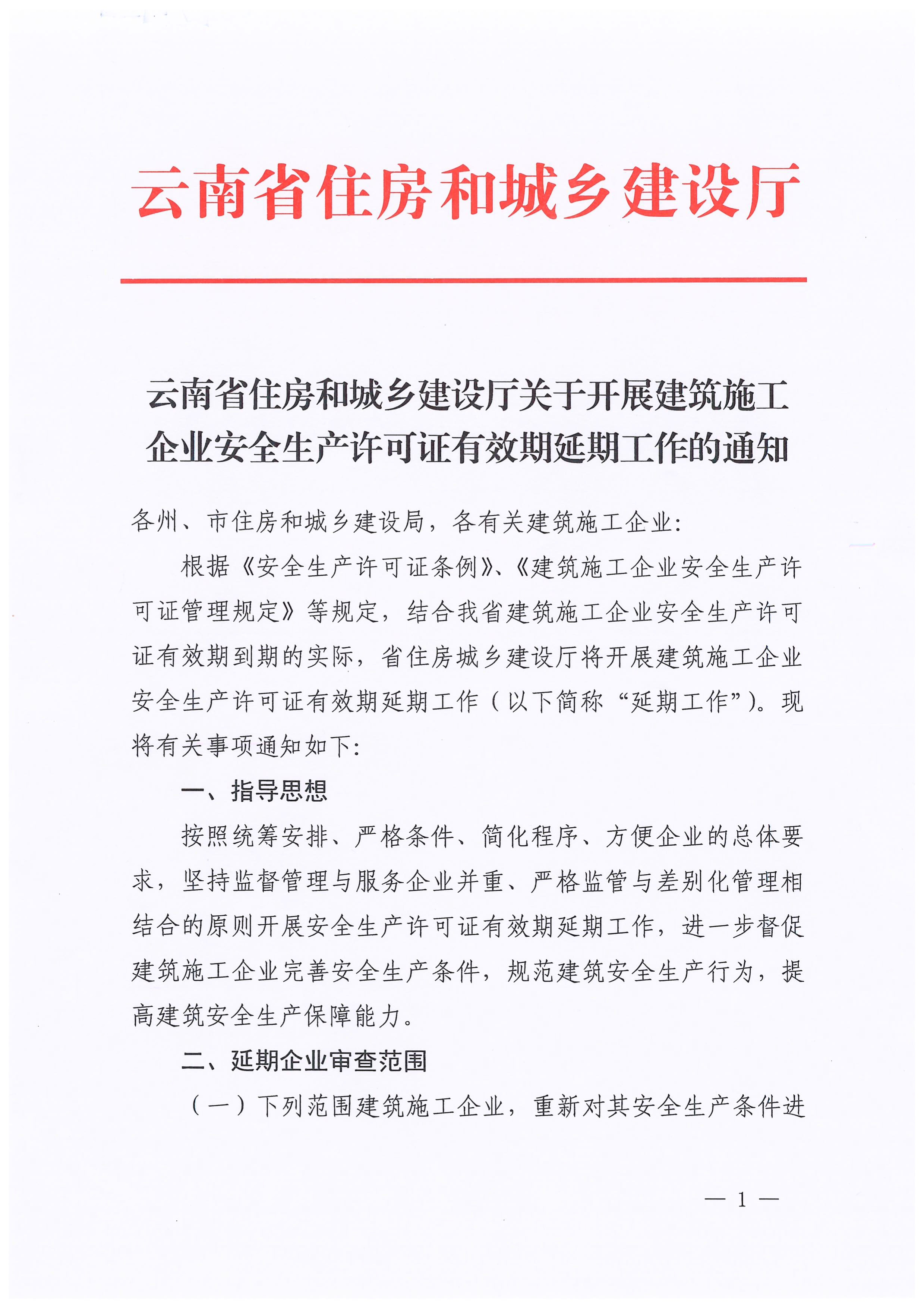 省住建廳關(guān)于開(kāi)展建筑施工企業(yè)安全生產(chǎn)許可證有效期延期工作的通知