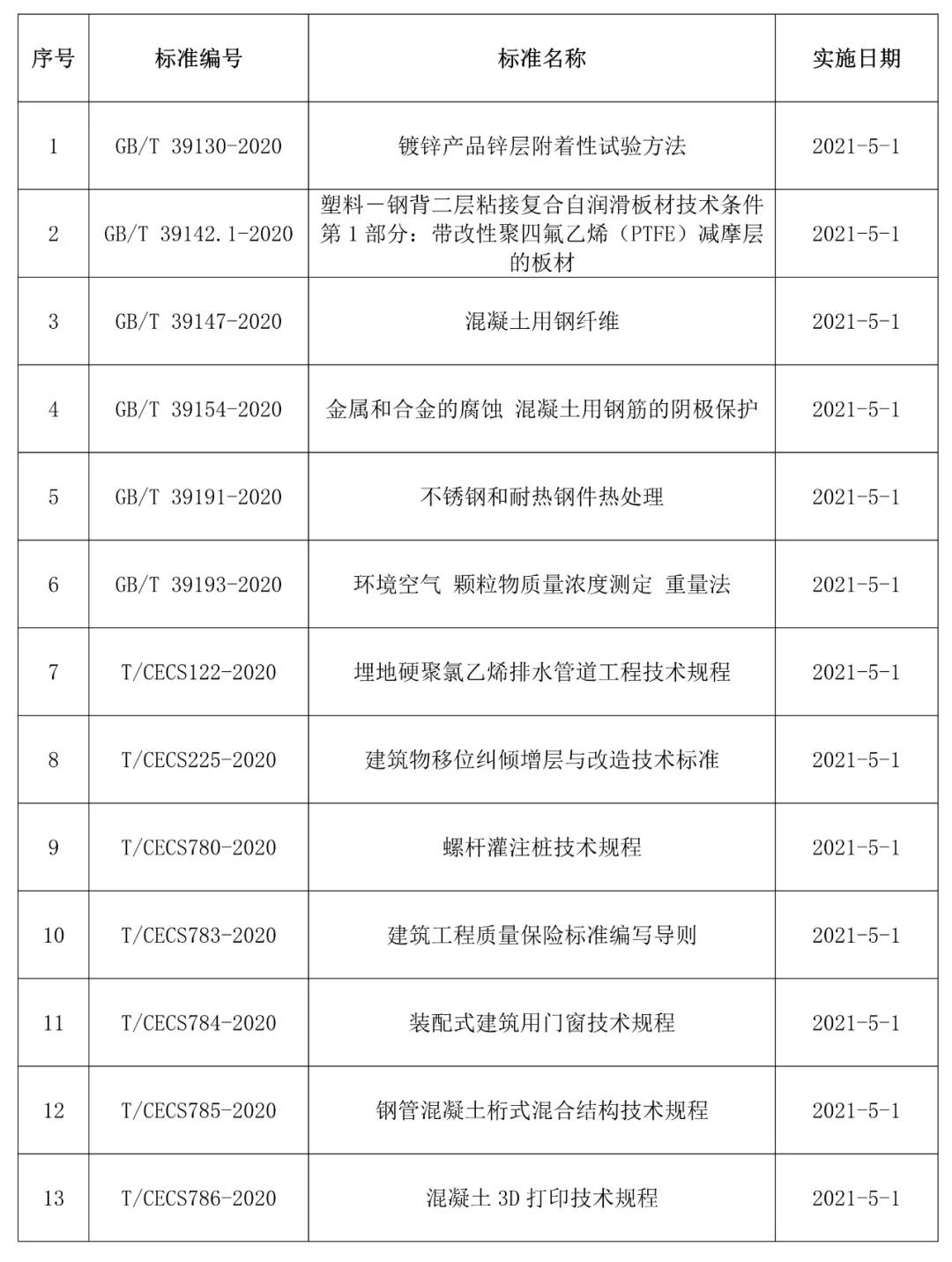 2021年5月開始實(shí)施的工程建設(shè)標(biāo)準(zhǔn)