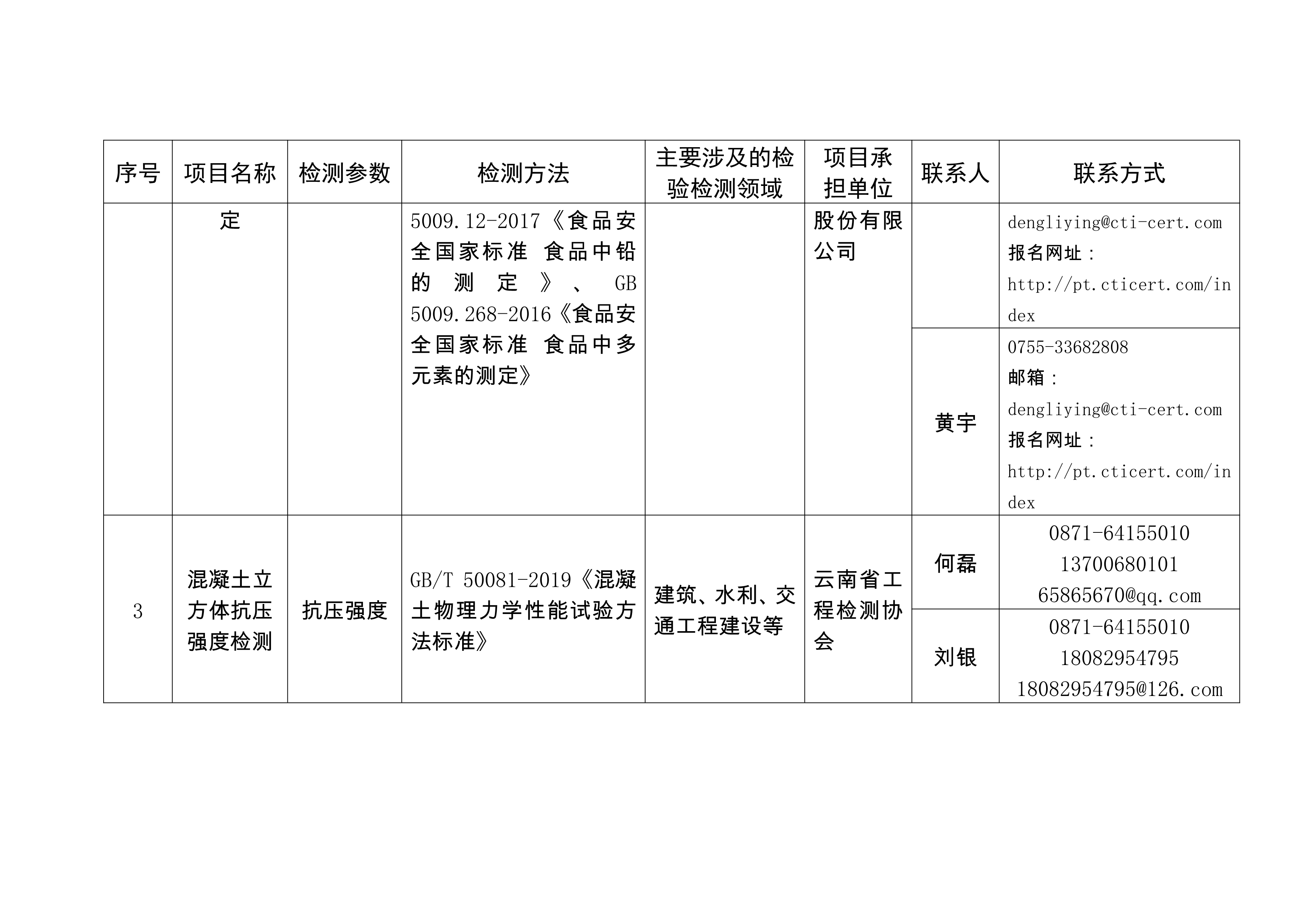 附件:2022年度云南省檢驗(yàn)檢測機(jī)構(gòu)能力驗(yàn)證項(xiàng)目及承擔(dān)單位匯總表