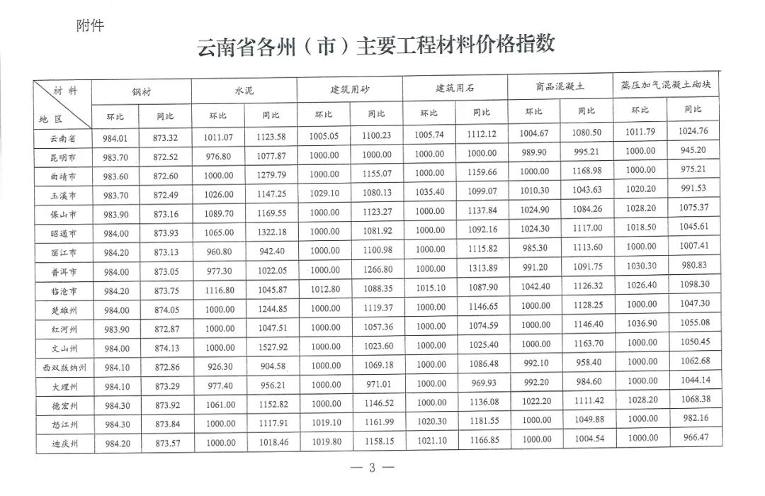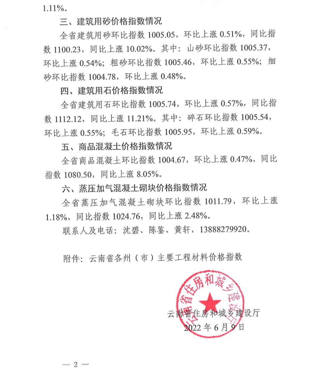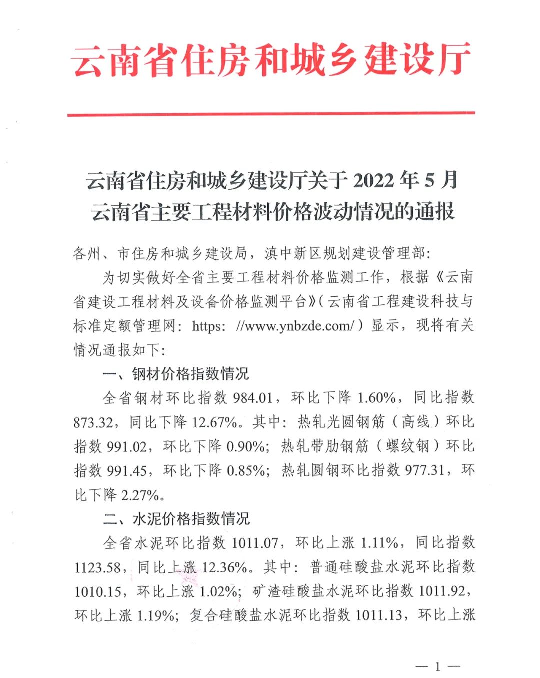 云南省住房和城鄉(xiāng)建設(shè)廳關(guān)于2022年5月云南省主要工程材料價格波動情況的通報