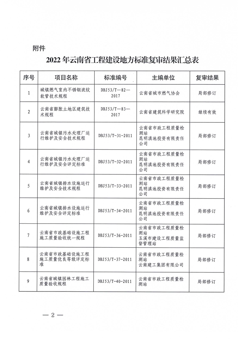 云南省住房和城鄉(xiāng)建設(shè)廳關(guān)于2022年云南省工程建設(shè)地方標(biāo)準(zhǔn)復(fù)審結(jié)果的公示