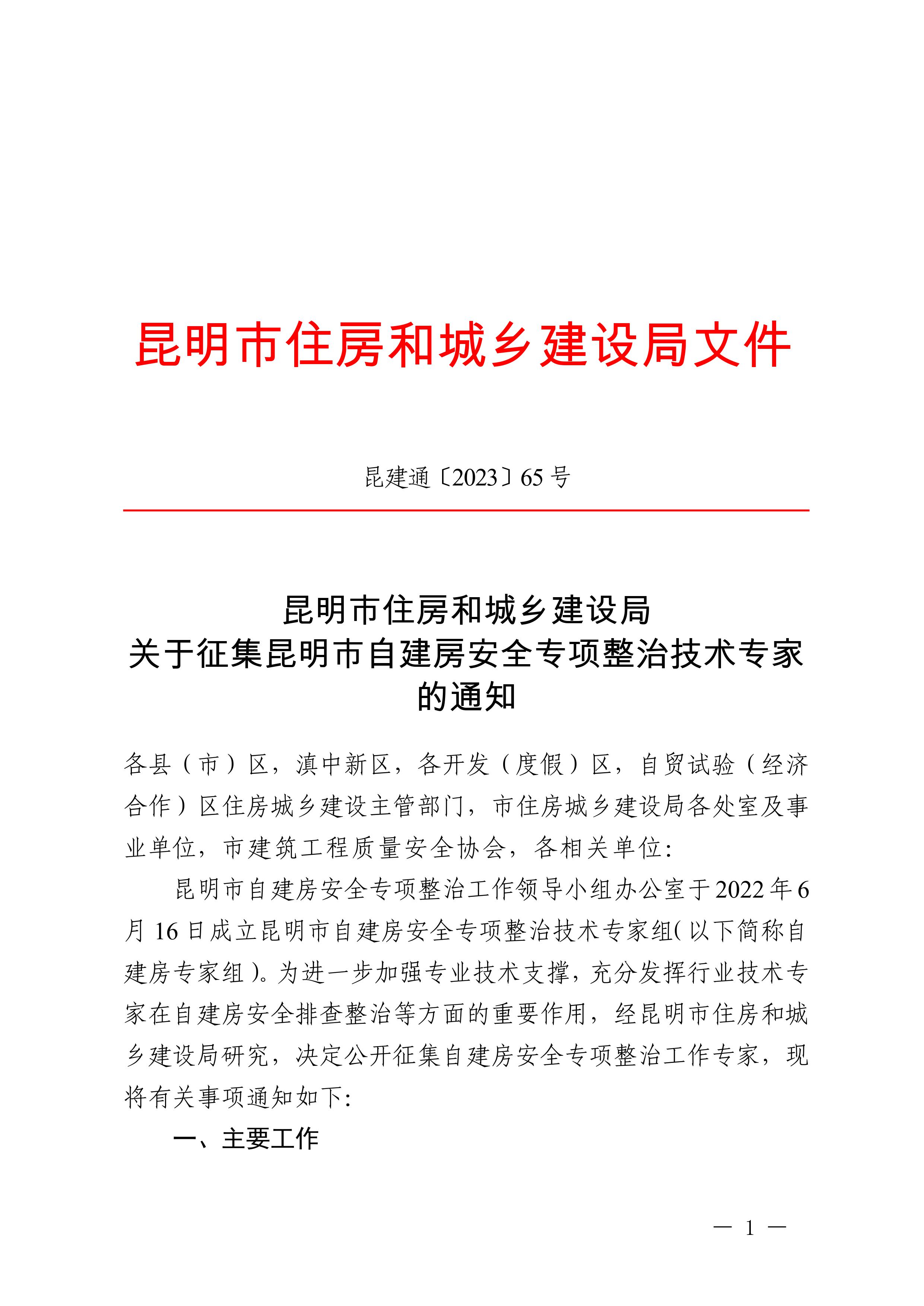昆明市住房和城鄉(xiāng)建設(shè)局關(guān)于征集昆明市自建房安全專項(xiàng)整治技術(shù)專家的通知