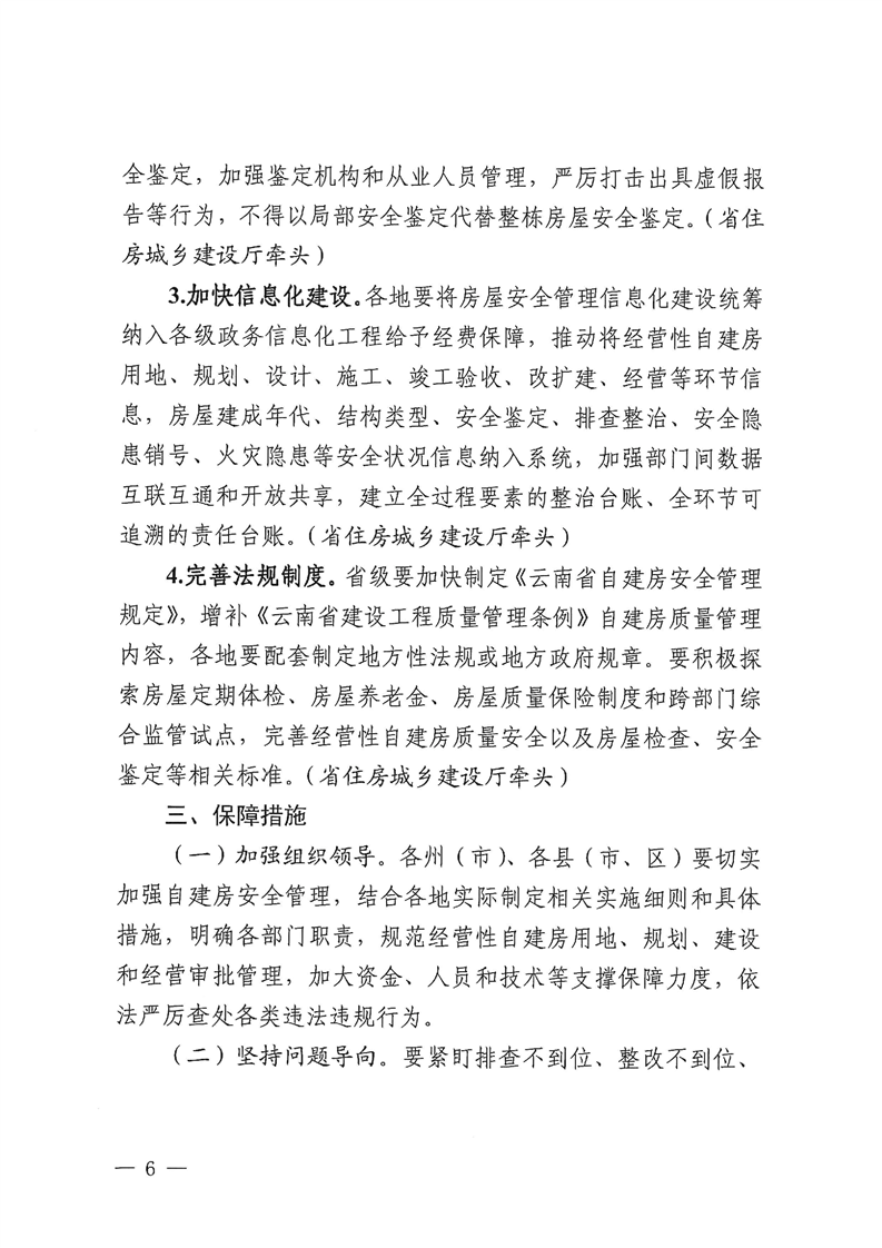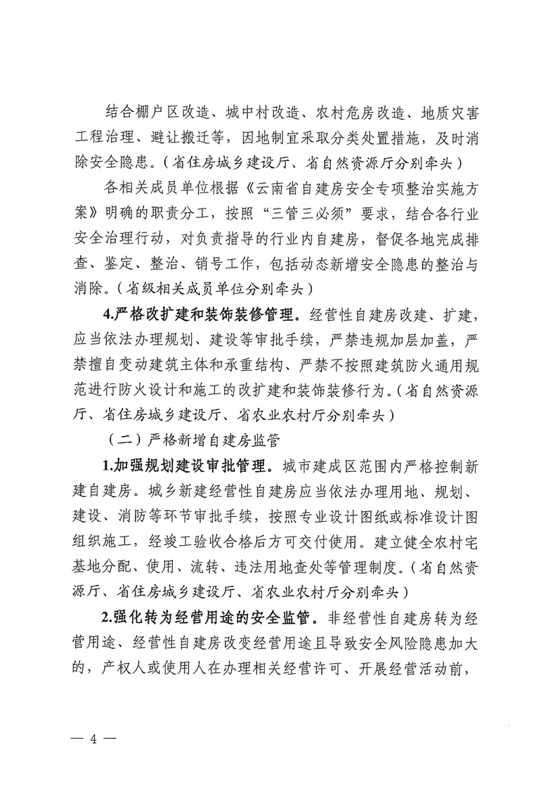 云南省自建房安全專項(xiàng)整治工作領(lǐng)導(dǎo)小組辦公室關(guān)于印發(fā)《云南省加強(qiáng)自建房安全管理工作的實(shí)施方案》的通知