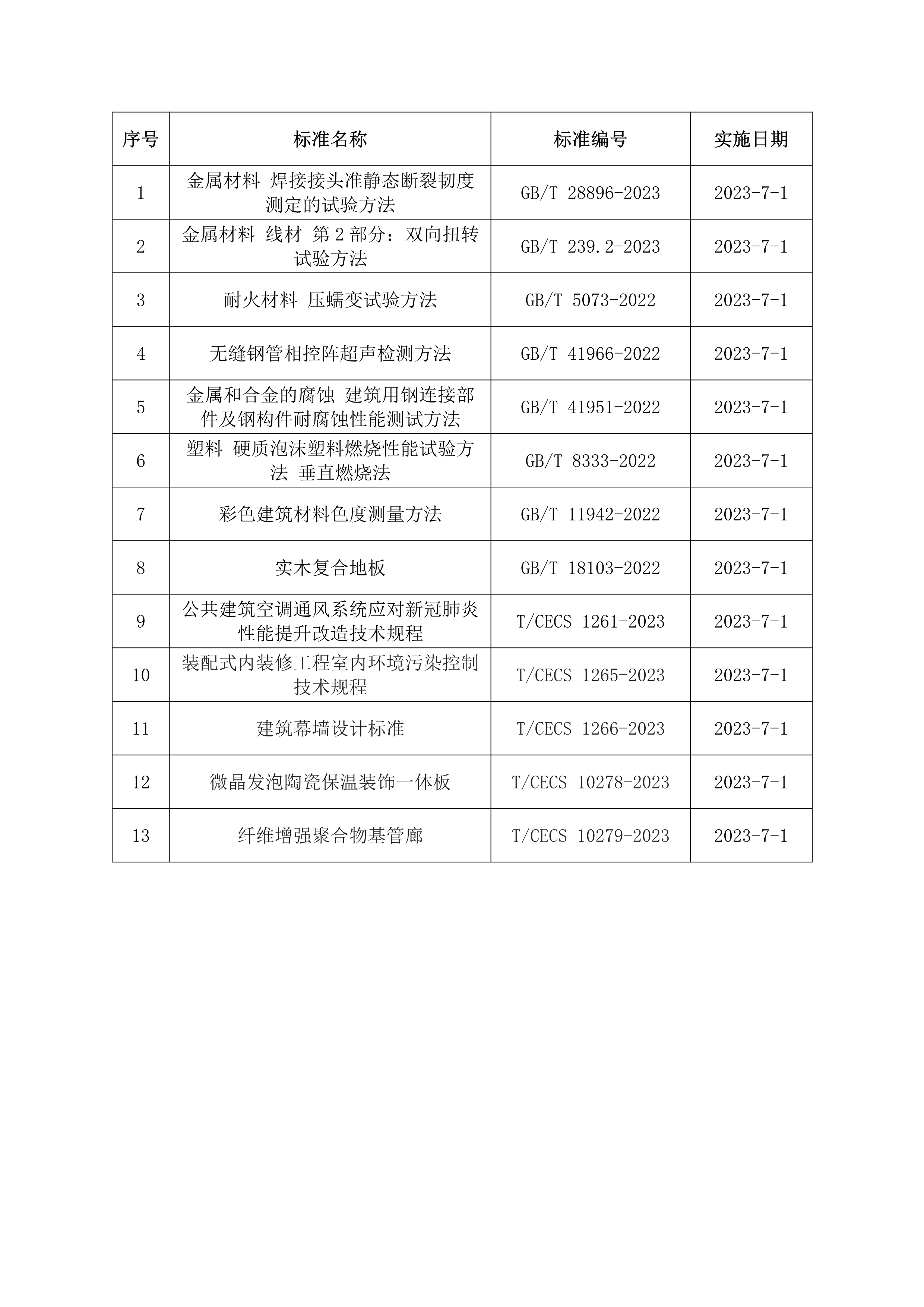 2023年7月開始實施的工程建設(shè)標(biāo)準(zhǔn)